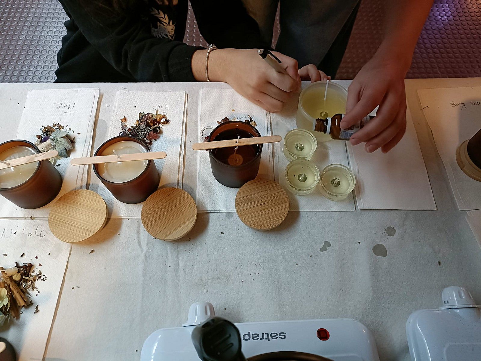 Ausserdem konnten Sojawachskerzen im Glas mit naturbasierten Materialien hergestellt werden. Auch Bastelarbeiten, viele unterschiedliche Seifen, selbstgemachten Schmuck und vieles mehr konnte gegen einen kleinen Unkostenbeitrag erworben werden.