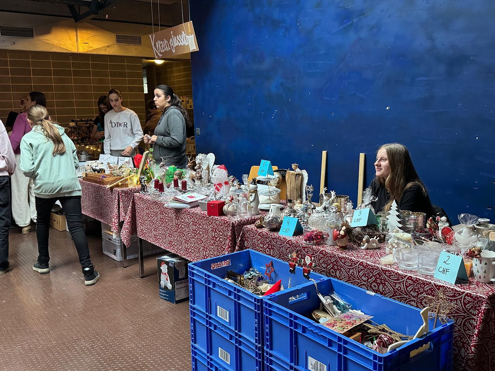 Der Startschuss fiel pünktlich um 11 Uhr und nur wenige Minuten später betraten die ersten Besucher das liebevoll geschmückte Schulhaus. Es lag der Duft von Leckereien in der Luft, denn es gab süsse Crépes, gebrannte Mandeln, Magenbrot, Waffeln, Bruchschokolade, Schoggifrüchte, süsse und salzige Grittibänz, Weihnachtsguetzli in unterschiedlichen Variationen, Churros, aber auch leckere Kürbissuppe, Bratwürste, Hot Dogs und vieles mehr.